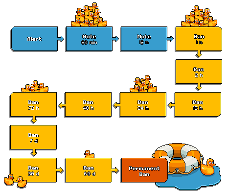The biggest change in comparison to the old moderation system is that most of the sanctions are now gradual. The new ban chart progresses like so: